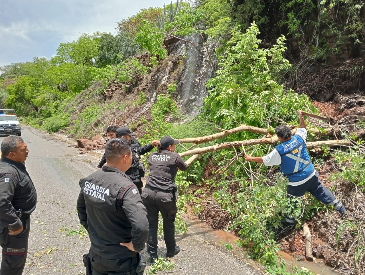 Guardia Estatal retira árbol y piedras que obstruían circulación en Carretera Estatal 64